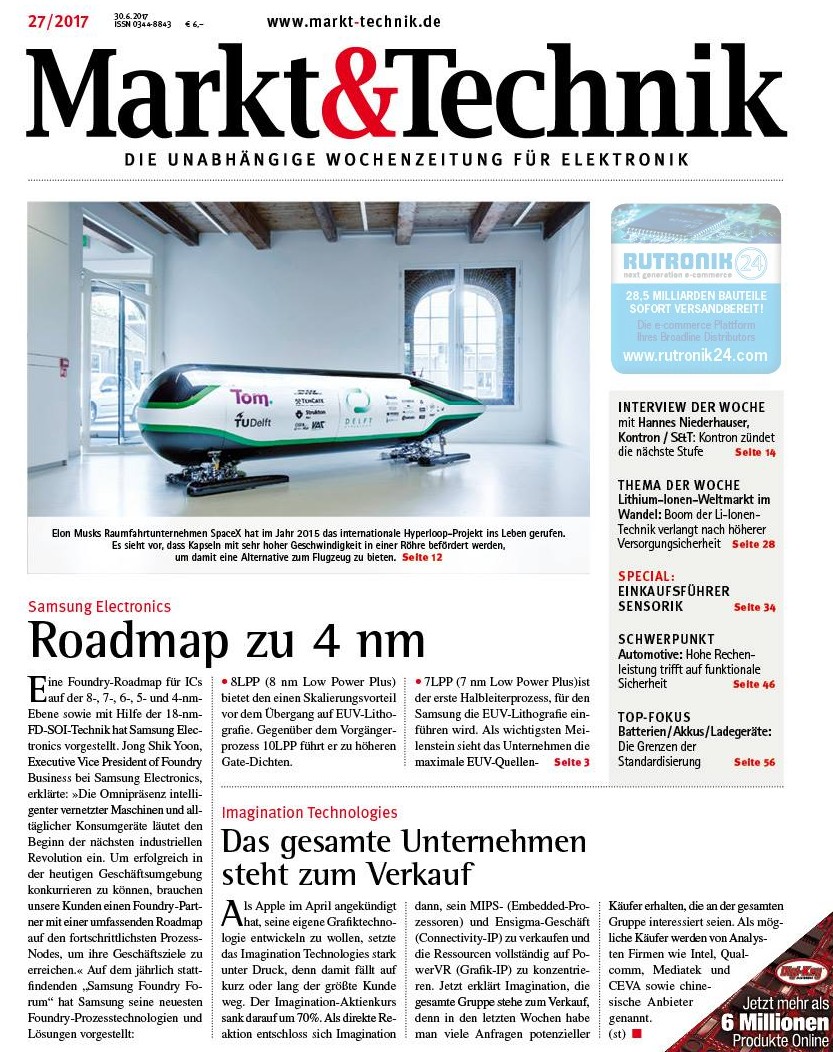 Die unabhängige Wochenzeitung für Elektronik Markt&Technik berichtet über das aktuelle Marktgeschehen, Technik-Trends, Innovationen, Management und neue Produkte und Hintergründe in der Elektronik-Industrie. Mithilfe klarer Rubriken, umfassender Marktübersichten und Schwerpunktberichten liefert die Zeitung einen verlässlichen Überblick über alle wichtigen Bereiche der Elektronik.