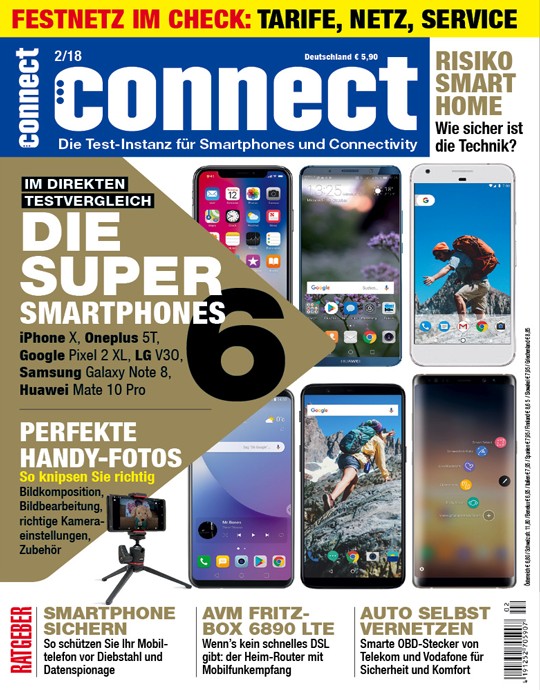 connect ist die anerkannte Test-Institution für alle Themen der Telekommunikation und der ultimative Kauf- und Praxisratgeber rund um die vernetzte Welt. In aktuellen und fundierten Beiträgen bildet das Magazin die rasante Entwicklung der Digitalisierung ab und bietet eine einzigartige Marktübersicht sowie Kaufentscheidungen zu Smartphones und Connectivity. Auch angrenzende Themenbereiche wie Notebooks, PDAs, mobiles Internet, Infotainment, Mobile Office, die Möglichkeiten der Vernetzung von Endgeräten im Innen- und Außenbereich sowie speziell für den Einsatz im Fahrzeug bestimmte Navigationssysteme werden in der connect untersucht.